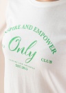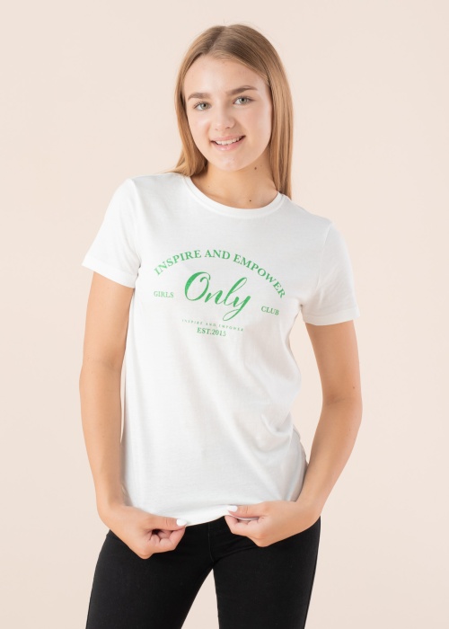 Jauks Only t-krekls der dažāda rakstura dienām. Ērts un ar apaļu kakla izgriezumu t-krekls ir ar īsām piedruknēm un elastīgs. [] priekšpusē padara izteiksmīgāku. Saskaņo ar saviem iecienītākajiem džinsiem un jūties pārliecināti. Foto: augums 147 cm valkā 146-152 izmēru.