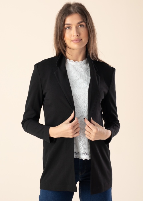 Gaumīga Only jaka der valkāšanai ikdienā mājās, darbā, kā arī brīvdienās. Stilīga un ar atlokamu apkakli jaka ir plāna un ar taisnu siluetu. Priekšpusē ir bez sastiprinājuma un valkāšanas komfortu nodrošina materiāla elastīgums. Foto: augums 178 cm valkā S izmēru.