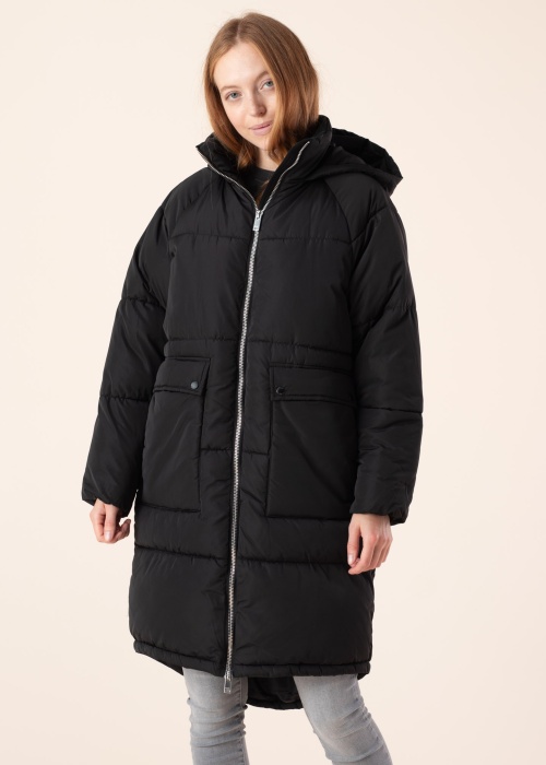 Stilīgs Only ziemas mētelis ieskauj Tevi ar savu maigumu. Minimālistisks un brīvs dizains ziemas mētelis- silts un ar brīvāka piegriezuma. Priekšpusē aizdare ar rāvējslēdzēju, praktiskas kabatas sānos un piedurkņu gali gumijas. Kapuce ir fiksēta , kā arī no aukstuma pasargā pūkains siltinājums. Foto: augums 174 cm valkā S izmēru.