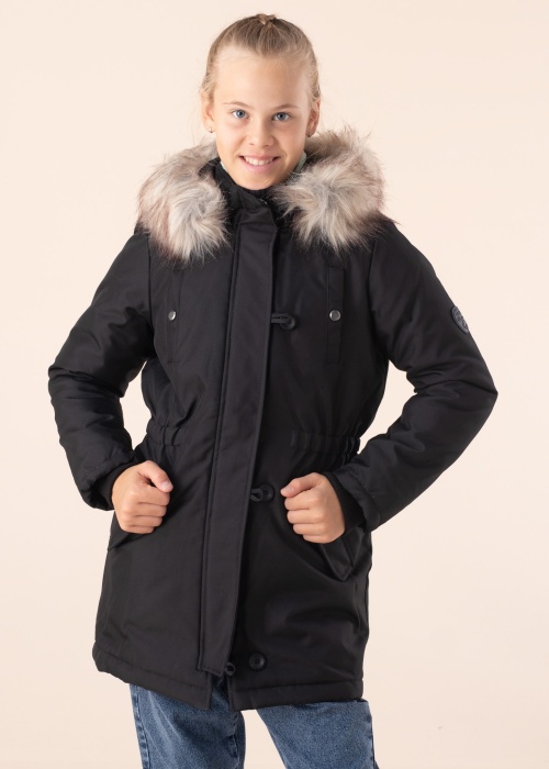 Vieglā Only ziemas parka Iris valkātāju izcels ar savu gaumīgumu. Priekšpusē aizdare ar rāvējslēdzēju, praktiskās kabatas atrodas sānos, piedurkņu galos gumija. Kapuce, kā arī mākslīgās kažokādas apmalojums, pēc vēlēšanās ir noņemami. Aukstumu aizturošs siltums. Doties pretī sezonai moderni. Modeles augums 146 cm, valkā 146. izmēru.
