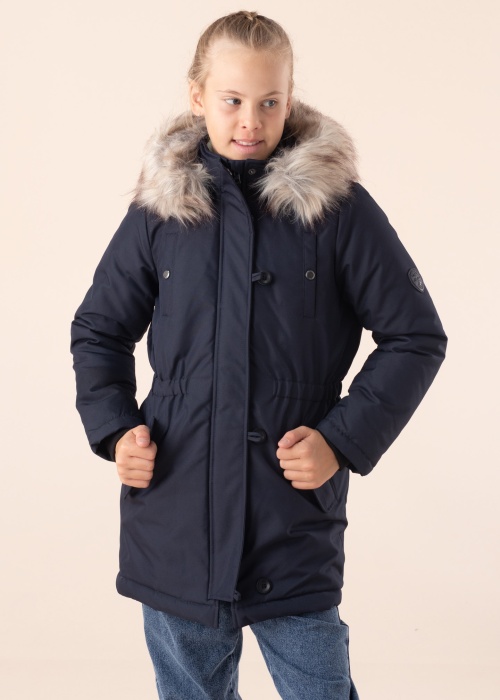 Vieglā Only ziemas parka Iris valkātāju lutinās ar savu gaumīgumu. Priekšpuse aizdarāma ar rāvējslēdzēju, praktiskās kabatas atrodas sānos, piedurkņu galos gumija. Kapuce, kā arī mākslīgās kažokādas apmale no tās, pēc vēlēšanās ir noņemama. Aukstumu aiztur lielisks siltums. Doties pretī sezonai moderni. Modeles augums 146 cm, valkā 146. izmēru.