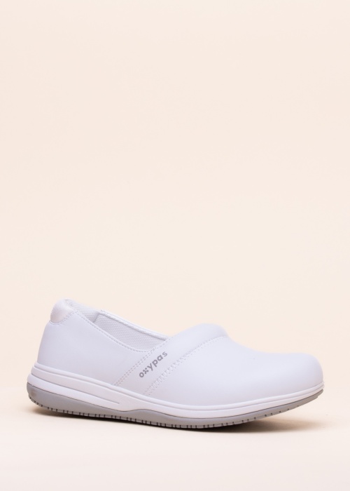 Kvalitatīvi un praktiski Oxypas drošības apavi atbilst Eiropas Savienības regulai 2016/425 saskaņā ar Eiropas standartu EN ISO20347: 2012 kopā ar standartu EN 344/1992, kas lieliski piemēroti veselības aprūpes speciālistiem, medmāsām un aprūpētājiem. Pareiza apavu veida izvēle ir atkarīga no drošības prasībām konkrētajā darbā! Virsdaļa ir izgatavota no izturīgas mākslīgās ādas, un Coolmax odere uztur kājas vēsumā un novirza mitrumu no ādas, iekšējā zolīte ir nomaināma. Slēgtajam papēdim un neslīdošai un triecienu absorbējošai zolei ir ESD antistatiskas īpašības. Papēža augstums, mērot no zoles malas, ir 5,5 cm.