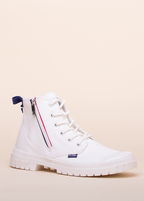 „Palladium” apavi sākotnēji tika ražoti Lionā, Francijā. Pēc Otrā pasaules kara „Palladium” sāka ražot apavus. Mūsdienās „Palladium” pieder amerikāņu uzņēmumam „K-Swiss”, un tos ražo Ķīnā un Vjetnamā. To apavi ir izturīgi un viegli, ūdensnecaurlaidīgi un izgatavoti no ātri žūstoša auduma, veiksmīgi iztur staigāšanu, rāpošanu, skriešanu un kāpšanu. Ja to dizains ir kļuvis pārlaicīgs, tad tas ir tāpēc, ka tas atbilst pamata noturībai, nodilumam, laikam un tendencēm.