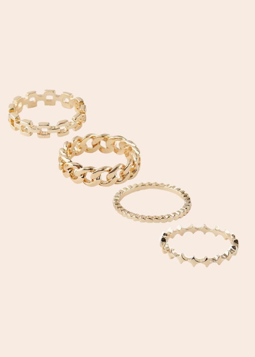 Jauki, sievišķīgi Pieces gredzeni lis ir lieliski piemēroti valkāšanai ikdienā. Komplektā ir četri dažādi gredzeni. Materiāls: cinks 100%. Krāsa: zeltīta.