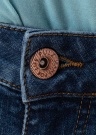 Divas noapaļotas kabatas priekšpusē - virs kreisās kabatas ir arī neliela imitācijas kabata, bet aizmugurē ir divas kabatas ar asu stūri, kuras rotā kniedes. Pie jostas cilpas piestiprināts neliels metāla gredzens ar zīmola logotipu, kuru pēc vēlēšanās var arī noņemt. Džinsiem ir maigs nodiluma efekts. Modeles augums 176 cm, valkā 27/32 izmēru.