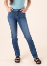 Pulz džinsi Emma ir no klasiska taisna piegriezuma un ērta, elastīga (Stretch) auduma, kurā ir arī elastomultiestera šķiedra, kas piešķir audumam elastību, bet tomēr nodrošina, ka tas izskatās ka klasiska džinsa audums. Vidēji augsta jostasvieta, priekšpusē aizdare ar rāvējslēdzēju un pogu. Priekšpusē divas noapaļotas kabatas, iekšpusē divas mazākas kabatas, no kurām kreisā puse aizdarāma ar rāvējslēdzēju. Aizmugurē divas kabatas ar asu stūri. Modeles augums 176 cm, valkā 27/32 izmēru.Materiāls: kokvilna 92%, elastomultiesteris 6%, elastāns 2%.Krāsa: zila.