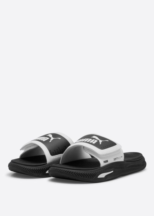 Puma vīriešu baseina čības SoftridePro ir gan stilīgas, gan praktiskas, nodrošinot komfortu gan pludmalē, gan dabā, gan pilsētas ielās. Tās ir lieliski piemērotas vasaras valkāšanai, pateicoties to vieglajam un elpojošajam materiālam. Uz virsmas ir redzams zīmola logo un klipsis, bet sānos ir zīmola raksts, kas piešķir papildu stila akcentu.