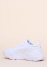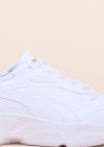 Klasiski balti, moderni un efektīgi Puma brīvā laika apavi Cassia izgatavoti no vienkrāsainas mākslīgās ādas, tos rotā logo uz apavu mēles un papēža daļā. Kājās šie lieliskā izskata apavi noturas ar klasisku auklu aizdari. Iekšpusi klāj audums, kas pielāgojas kājai, un SOFTFOAM iekšzole nodrošina lielisku mīkstumu uz katra soļa. Ārzole ir biezāka, gumijota, nodrošinot labu triecienu absorbāciju un noturību uz dažādām virsmām. 39. izmēra apava svars ir 334 g.