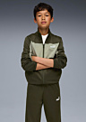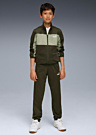 Puma puišu sporta tērps ir ērts un stilīgs komplekts, kas piemērots gan treniņiem, gan brīvā laika pavadīšanai. Tērpam ir augsta apkakle un elastīga josta, kas nodrošina komfortu un kustību brīvību. Priekšpusē ir rāvējslēdzējs un Puma logo, savukārt sānos ir tuneļa aukla uz jostas un gumija uz malas, kas piešķir papildu funkcionalitāti un modernu izskatu.