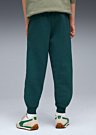 Puma zēnu sporta bikses ir izgatavotas no bieza materiāla, kas nodrošina siltumu un komfortu vēsākās dienās. Tām ir elastīga jostasvieta ar auklu, kas ļauj pielāgot bikšu piegulšanu, un valnītis bikšu galos piešķir modernu izskatu. Zem kreisās kabatas ir izvietots Puma logo, kas piešķir sportiskajam tērpam papildu stila akcentu.