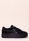 Puma zamšādas kedas Karmen ar platformas zoli ir izturīgas un modernas. Virspusē zeltīti logo uz apavu mēlītes, ārmalas, bet uz aizmugurējās papēža daļas melnā tonī. Iekšējā apdare ar ērtu polsterējumu un tekstila pārklājumu, un izņemamā iekšzole ar SOFTFOAM mīkstinājumu nodrošina optimālu komfortu. 4,5 cm augsta platformas zole ir, izturīga un ar labu saķeri.