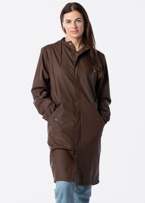 Rains sieviešu lietusmētelis ir elegants un vienkrāsains, kas lieliski papildinās jebkuru garderobi. Tas ir izturīgs pret laikapstākļiem un aprīkots ar kapuci, lai pasargātu no lietus un vēja. Lietusmētelis ir ūdens atgrūdošs un tevi nepievils pat visnepatīkamākajos laikapstākļos. Nolīmētas šuves un nolīmēts rāvējslēdzējs priekšpusē nodrošina papildu aizsardzību pret mitrumu, savukārt gumija piedurkņu galos nodrošina komfortablu piegulšanu. Modele ir 176 cm gara un valkā S izmēru.