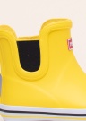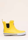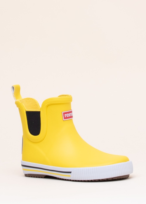 Atraktīvie, mirdzoši dzeltenie un izteiksmīgie Reima gumijas zābaki Ankles ir ļoti ērta izvēle bērnam, kurš mīl spēlēties ārā. Sānos izvietotas gumijas līstes, priekšpusē dekoratīvs uzraksts. Iekšpusi klāj tekstils, un iekšzole nodrošina mērenu mīkstumu. Ārzole no gumijota materiāla, kas veicina saķeri ar virsmām. 36. izmēra apava svars ir 385 g.