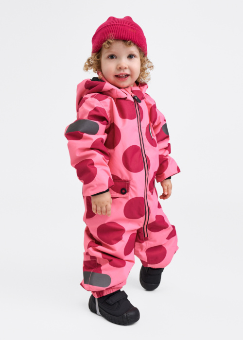 Reima meiteņu pavasara-rudens kombinezons Marte Mid ir košs un ērts tērps, kas piesaista uzmanību ar interesantu rakstu. Tas ir izgatavots no materiāla, kas atgrūž ūdeni un neļauj cauri vējam, nodrošinot aizsardzību mainīgos laikapstākļos. Priekšpusē ir kabatas ar spiedpogām, kas ir gan praktiskas, gan stilīgas, un kapuce ir noņemama, lai pielāgotu kombinezonu dažādām vajadzībām. Piedurkņu galos ir valnītis, bet bikšu galos un viduklī ir gumija, kas nodrošina patīkamu piegulšanu un kustību brīvību.