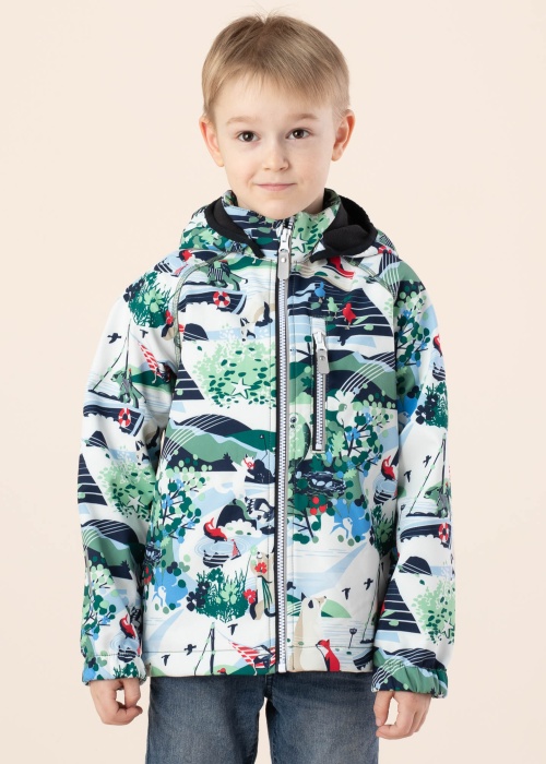 Burvīga Reima pavasara-rudens virsjaka padarīs katru dienu īpašu. Ūdens atgrūdoša pavasara-rudens virsjaka ir labi pieguļoša un . Priekšpusē aizdare ar rāvējslēdzēju , uz krūtīm ir kabata ar rāvējslēdzēju , kā arī piedurkņu galos ir gumijas. Izbaudi bezrūpīgu rotaļu! Foto: augums 121 cm valkā 122 izmēru.