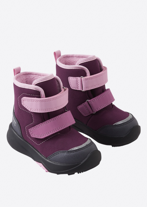 Reima meiteņu ziemas zābaki Talviuni ir ērti un praktiski, nodrošinot komfortu ikdienas valkāšanai. Šie zābaki ir izturīgi pret laikapstākļiem un ūdens atgrūdoši, kas padara tos piemērotus dažādiem ziemas apstākļiem. Velkro aizdares priekšpusē nodrošina vieglu un ātru uzvilkšanu, savukārt atstarotāji purngalā un papēdī palielina drošību tumsā. Zīmola raksts sānos piešķir zābakiem stilīgu izskatu, vienlaikus saglabājot to funkcionalitāti un siltumu.