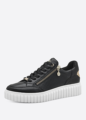 s.Oliver sieviešu kedas ir lieliska izvēle ikdienas gaitām, nodrošinot komfortu un praktiskumu. Šīs kedas ir piemērotas dažādām situācijām, piedāvājot ērtumu un stilu jebkurā brīdī. Virspusē ir sasienama josta, kas piešķir apaviem unikālu izskatu un ļauj pielāgot to piegulšanu. Sānos ir ērts rāvējslēdzējs, kas atvieglo keda uzvilkšanu un novilkšanu, kā arī reljefa raksts, kas piešķir papildu šarmu. Papēdī ir dekoratīvs elements, kas piešķir apaviem elegantu akcentu un padara tos par lielisku papildinājumu jebkuram tērpam.
