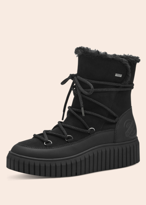 s.Oliver sieviešu rudens un ziemas zābaki ir viegli un ērti, ideāli piemēroti brīvā laika pavadīšanai. Pateicoties Tex membrānai, šie apavi ir ūdens atgrūdoši un elpojoši, un sānu iekškabatas rāvējslēdzējs piešķir interesantu dizainu. Soft Foam mīkstā iekšzole nodrošina maksimālu komfortu un patīkamu sajūtu ik uz soļa.