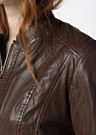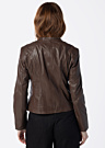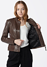 Saki sieviešu ādas jaka Dara ir klasiska un komfortabla, ar sievišķīgu piegriezumu, kas sniedz pārliecības sajūtu. Jakai ir rāvējslēdzējs priekšpusē, kā arī sānu iekškabata un krūšu kabata ar rāvējslēdzēju. Modele ir 174 cm gara un nēsā 36. izmēru.