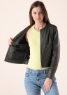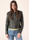 Tīra stila Saki ādas jaka dod pašpārliecinātību. Sievišķīga un ar apaļu kakla izgriezumu ādas jaka ir plāna un labi pieguļoša. Priekšpusi nostiprina ar rāvējslēdzēju un sānos ir atvērtas kabatas. Vienkāršais dizains piesaista ar savu patīkamo izskatu un piedurkņu galos ir šķēlumi. NB! Fotogrāfijā redzamā krāsa atšķiras no realitātes! Foto: augums 177 cm valkā 36 izmēru.