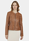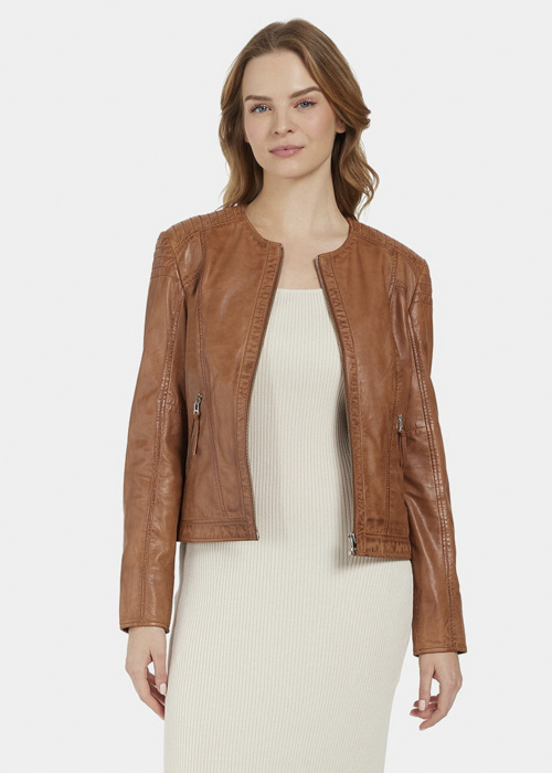Saki sieviešu ādas jaka Paula ir kvalitatīva un stilīga apģērba vienība, kas izceļ sievišķību un eleganci. Jakai ir apaļš kakla izgriezums un dizaina šuve uz pleciem, kas piešķir tai unikālu izskatu. Sānos esošās kabatas nodrošina praktiskumu un ērtību ikdienas lietošanā.