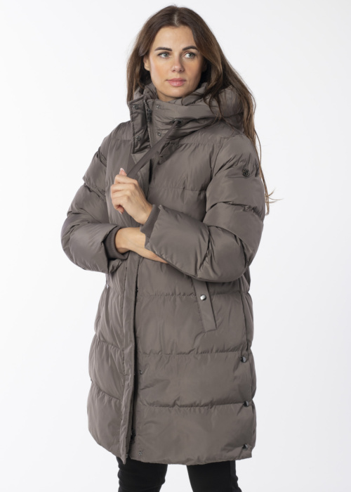 Saki sieviešu ziemas mētelis ir klasisks un silts apģērbs, kas nodrošina komfortu aukstajos mēnešos. Mētelim ir piešūta kapuce un stepēts dizains, kas piešķir papildu siltumu un stilu. Priekšpusē un sānos ir kabatas ar spiedpogām, kā arī krūšu kabata ar rāvējslēdzēju iekšpusē. Piedurkņu galos ir elastīgs valnītis. BIONIC-FINISH ECO tehnoloģija nodrošina, ka audums atgrūž ūdeni un netīrumus, saglabā krāsu, ātri žūst un ir izturīgs pret laikapstākļiem. Mētelis ir elpojošs un piemērots aktīvai kustībai. Modele ir 176 cm gara un valkā 38. izmēru.