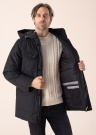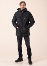 Zviedru zīmols SAKI rada augstas kvalitātes virsdrēbes, kur stils, piemērotība un materiālu izvēle tiekas ar funkcionāliem detaļu risinājumiem. Saki ziemas jaka Truman ir izgatavota no divslāņu konstrukcijas, kas nodrošina ūdens atgrūšanu 10 000MM un elpojamību 5000g/m2/24H, vienlaikus nodrošinot arī vēja izturību. Funkcionālā jaka no priekšpuses atverama ar divpusēju rāvējslēdzēju, ko aizsargā līste ar pogām. Fiksētā kapuce regulējama ar savilcējgumijām un ārpusē izvietotas vairākas kabatas: krūtīs ir atloka kabata un kabata ar rāvējslēdzēju, dubulta dizaina sānu kabatas ir telpiskas, no augšas atveramas ar atlokiem un ārmalā ir atvērtas kabatas, bet kreisajā piedurknē ir kabata ar atloku un rāvējslēdzēju. Iekšpusi oderē poliestera audums, un tās iekšmalās ir kabatas ar rāvējslēdzējiem, un savilkšanas gumijas ļauj pielāgot jakas piemērotību gan viduklī, gan apakšmalā. Modeļa augums 195 cm, valkā 52. izmēru. Garums no apkakles līdz apakšmalai 83,5 cm. Materiāls: virsējā apdare, odere, siltinājums poliesters 100%. Krāsa: melna