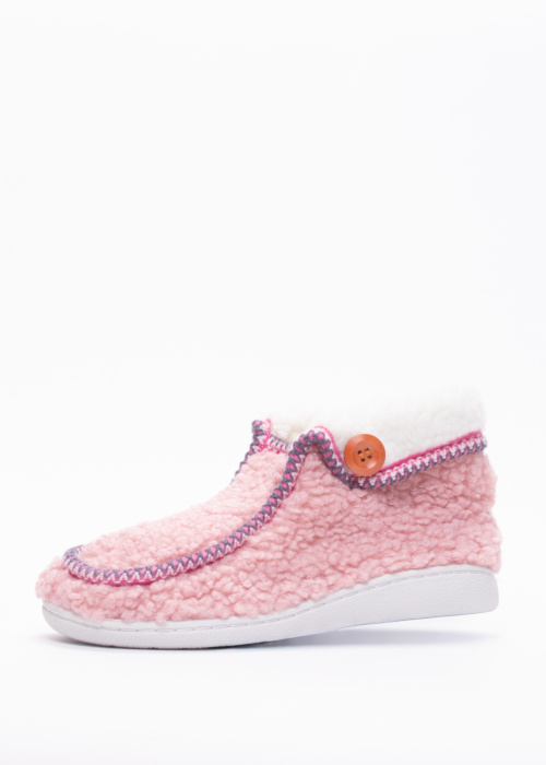 Scandi sieviešu čības ir veidotas no mīksta materiāla, kas nodrošina komfortu un siltumu. Tām ir dekoratīva mala, kas piešķir papildu šarmu, un dizaina šuve purngalā, kas izceļ čību unikālo stilu. Sānos ir pievienota poga, kas kalpo kā elegants akcents un papildina kopējo izskatu.