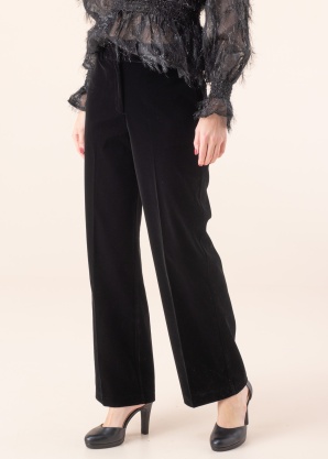 Lieliskas Selected Femme garās bikses Velva piemērotas vakariņām. Sānos ir atvērtas kabatas, bet priekšpusē un aizmugurē – dizaina šuves. Biksēm ir taisns griezums un augsta jostasvieta, kas aizdarāma ar pogu, āķi un rāvējslēdzēju. Modele ir 174 cm gara, valkā 36. izmēru.