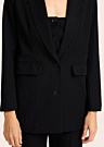 Selected Femme sieviešu jaka Eli-rita ir eleganta un svinīga izvēle ar svītrainu dizainu un mirdzošu efektu. Jakai ir atlokāma apkakle un brīvs piegriezums, kas nodrošina elastību un komfortu. Priekšpusē ir pogu aizdare, kabata ar atloku, kā arī poga piedurkņu galos, savukārt aizmugurē ir šķēlums un iekšpusē atvērta krūšu kabata.