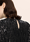 Selected Femme sieviešu kleita Ari-colyn ir īsts modes dārgums, kas piesaista uzmanību ar savu unikālo dizainu. Kleita ir iespaidīga un sievišķīga, izceļot tās valkātājas personību un stilu. Virspusē izmantotie spīdīgie fliteri rada iespaidīgu vizuālo efektu, padarot kleitu pamanāmu jebkurā pasākumā. Sānos iestrādātais rāvējslēdzējs nodrošina komfortablu un praktisku valkāšanu, vienlaikus saglabājot elegantu izskatu. Šis tērps ir lieliska izvēle sievietēm, kuras vēlas izcelties un justies pārliecināti.