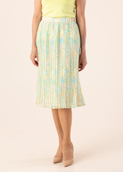 Vasarīgu ziedu raksta selected Femme plisē svārki Georgia ir divslāņu, plisēts audums no caurspīdīga šifona un apakšsvārki no zīda poliestera.