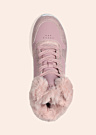 Skechers meiteņu un puszābaki Uno Lite ir lieliski piemēroti aktīvai ikdienai, piedāvājot vieglu un sportisku izskatu. Apavi ir aprīkoti ar dekoratīvu malu augšdaļā un sasienamu jostu priekšpusē, kā arī perforējumu purngalā, kas piešķir papildu stilu un funkcionalitāti. Pateicoties Air-Cooled Memory Foam iekšzolei, kas atbalsta pēdu velvi un pielāgojas valkātāja pēdas formai, tiek nodrošināts komforts un mīkstums kustībā, savukārt Non Marking Technology zoles neiezīmē virsmas, padarot šos apavus par lielisku izvēli jebkurai situācijai.
