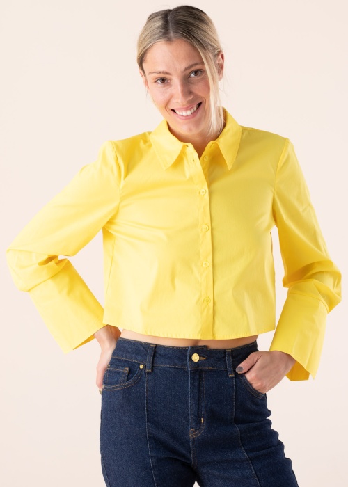 Jauka Somethingnew blūze der valkāšanai ikdienā. Jauneklīga īsāks piegriezums blūze ir viegla un ar īsāku piegriezumu. Priekšpusi nostiprina ar pogu aizdari un piedurkņu galos ir pogas. Foto: augums 177 cm valkā S izmēru.
