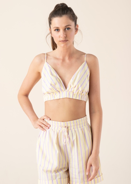 Somethingnew tops ir populāra un jauneklīga! Viegls tops ir ar svītrainu rakstu un ar plecu siksnu. Malas apakšā ir gumija un plecu siksnu garums ir regulējams. Foto: augums 177 cm valkā S izmēru.