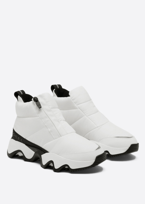Sorel sieviešu ziemas zābaki Kinetic Impact ir gan stilīgi, gan praktiski, lieliski piemēroti aktīvai ikdienai. Tie ir izturīgi pret dažādiem laikapstākļiem un atgrūž ūdeni, nodrošinot siltumu un komfortu pat aukstākajās dienās. Zābakiem ir rāvējslēdzējs sānos, kas atvieglo to uzvilkšanu, un zīmola raksts apakšā piešķir tiem īpašu šarmu. Interesants dizains uz zoles un atstarotāji aizmugurē un priekšpusē nodrošina papildu drošību un redzamību tumsā.