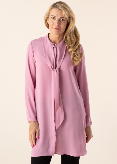 Pieticīga Soyaconcept blūze rada svaigu un gaumīgu kopskatu. Gaisīga un brīvi krītoša blūze ir ar garu piegriezumu un ar brīvāka piegriezuma. Priekšpusē pogu aizdare, uz apkakles sasiešanas lentes un piedurkņu galos pogu aizdare. Ja mīli minimālistisku un ilgtspējīgu dizainu, tā ir perfekta izvēle! Foto: augums 178 cm valkā S izmēru.