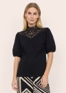 Soyaconcept sieviešu blūze Fausta 1 ir apburoša un vienkrāsaina, ar īsām piedurknēm, kas sniedz pārliecības sajūtu. Blūze ir izgatavota no materiāla ar patīkamu pieskārienu, kas nodrošina komfortu visas dienas garumā. Apkakli rotā mežģīnes, piešķirot apģērbam elegantu akcentu. Muguras daļā ir pogu aizdare, savukārt piedurkņu galos ir iestrādāta gumija, kas nodrošina patīkamu piegulēšanu.