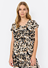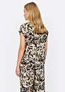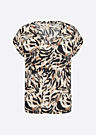 Soyaconcept sieviešu blūze Perla ir lieliska izvēle ikdienas valkāšanai, pateicoties tās interesantajam rakstam un vieglajam materiālam. Blūzei ir V-veida kakla izgriezums un īsas piedurknes, kas piešķir tai elegantu un modernu izskatu. Brīvais piegriezums nodrošina komfortu un kustību brīvību visas dienas garumā.