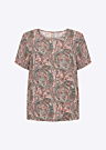 Soyaconcept sieviešu blūze Pianna ir pievilcīgs apģērbs ar interesantu rakstu, kas piešķir unikālu izskatu. Blūzei ir īsas piedurknes un apaļš kakla izgriezums, kas nodrošina komfortablu un stilīgu valkāšanu. Tā ir izgatavota no LENZING™ ECOVERO™ šķiedras, kas iegūta no sertificētiem atjaunojamiem koksnes avotiem, izmantojot videi draudzīgu ražošanas procesu un ievērojot augstus vides standartus.