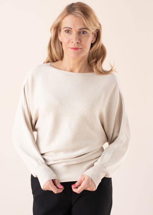 Jauks Soyaconcept džemperis parūpējies, lai varētu labi justies visu garo dienu. Patīkami mīksts omulīgs džemperis ir sikspārņa piedurknes un ar sikspārņa piedurknēm. Saskaņo ar dažādiem apģērbiem un radi jaunus stilus! Foto: augums 178 cm valkā S izmēru.