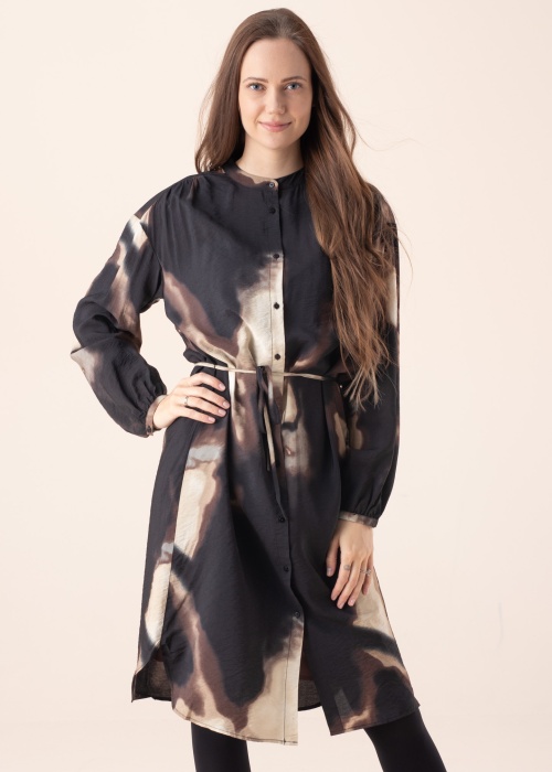 Efektīga un moderna Soyaconcept zīmola kleita Glenn piemērota valkāšanai ikdienā. Priekšpusē pogu aizdare, viduklī aukla. Noskaņu rada virsmas raksts. Audums ar patīkamu pieskārienu ļauj izbaudīt valkāšanu. Vienkāršais dizains veido lielisku koptēlu. Modele ir 175 cm gara, valkā S izmēru.