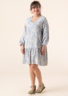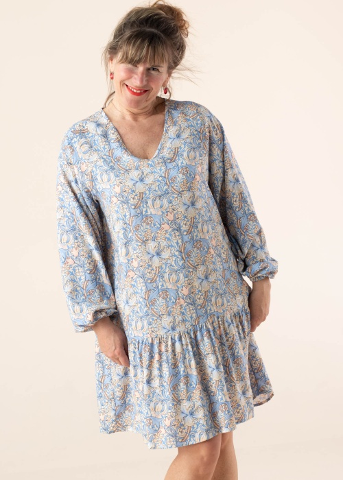 Vasarīga Soyaconcept kleita der dažāda rakstura dienām. Jauka un ar V-veida kakla izgriezumu kleita ir ar brīvāka piegriezuma un viegla. Akcentu pievieno interesants raksts virspusē piedurkņu galos ir gumijas. Foto: augums 168 cm valkā S izmēru.