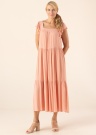 Jauka Soyaconcept kleita padarīs katru dienu īpašu. Vasarīga un ar plecu siksnu kleita ir ar brīvāka piegriezuma un laba krituma. piedurkņu galos ir apburošas rišas , uz apkakles atrodas gumija , kā arī apakšā ir nepilna garuma apakšsvārki. Foto: augums 178 cm valkā S izmēru.