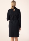 Sievišķīga Soyaconcept kleita dod pašpārliecinātību. Ar matētu virsmu kleita ir klasiska un ar paaugstinātu apkakli , kā arī valkāšanas komfortu nodrošina materiāla elastīgums. Viduklī ir sasienama josta , sānos ir šķēlumi un gaumīgumu piešķir stilīgs dizains. Foto: augums 178 cm valkā S izmēru.