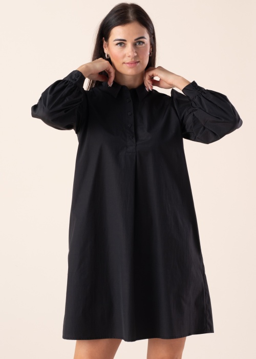 Jauka Soyaconcept kreklkleita rada svaigu un gaumīgu kopskatu. Jauneklīga a-veida piegriezuma kreklkleita ar atlokāmu apkakli un ar brīvāka piegriezuma. Uz apkakles pogu aizdare, sānos atvērtas kabatas un piedurkņu galos pogas. Ja mīli minimālistisku un ilgtspējīgu dizainu, tā ir perfekta izvēle! Foto: augums 176 cm valkā S izmēru.