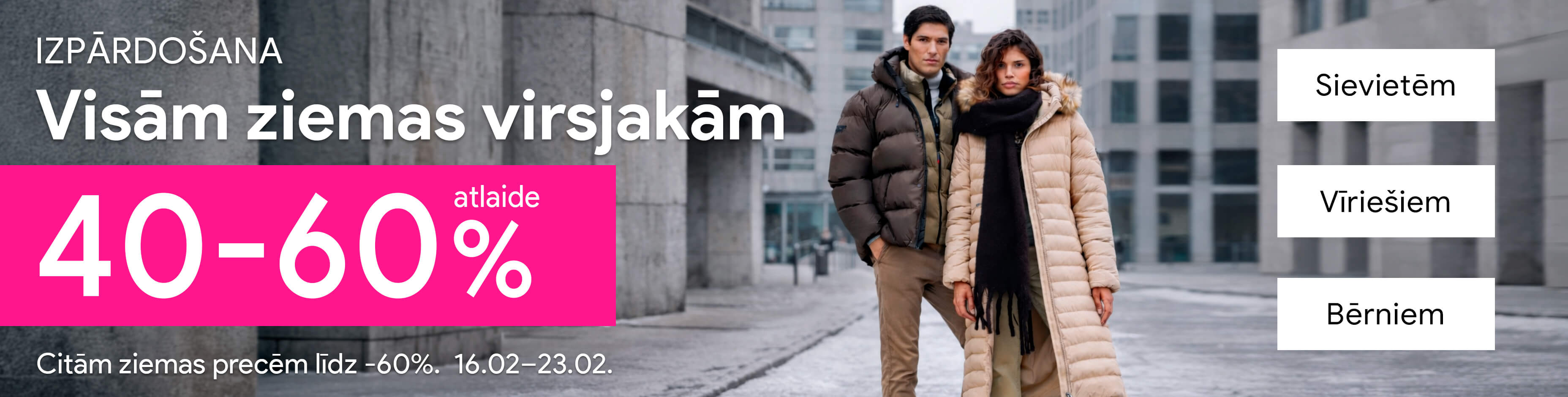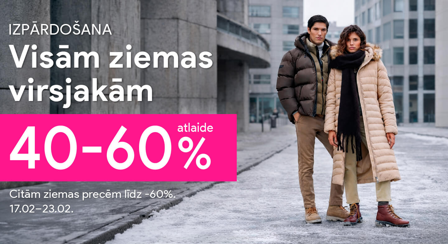 IZPĀRDOŠANA! Rudens virsjakas, džinsa bikses, kurpes, brīvā laika un sporta apavi, puloveri, džemperi u.c. līdz pat -70%! Skatīt sievietēm | vīriešiem | bērniem.