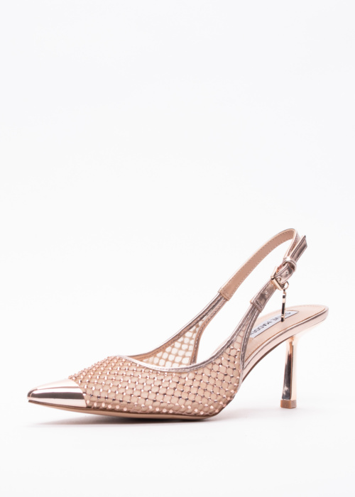 Steve Madden sieviešu kurpes Vixyn ir elegants un pievilcīgs aksesuārs, kas piešķir sievišķīgu un svinīgu izskatu. Kurpju caurspīdīgais dizains un mirdzošie akmentiņi virspusē piešķir valkātājai papildu pārliecību. Sānos ir sprādze un elastīga josla, kas nodrošina komfortablu un drošu valkāšanu. Zīmola etiķete sānos piešķir kurpēm atpazīstamību un prestižu. Interesantais dizains uz papēža pievērš uzmanību un padara šīs kurpes par unikālu stila elementu.