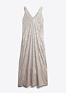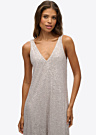 SuperDry sieviešu kleita ir eleganta un sievišķīga, piešķirot valkātājai īpašu šarmu. Kleitai ir V-veida kakla izgriezums, kas izceļ dekoltē zonu un piešķir tai modernu izskatu. Virspusē esošie spīdīgie fliteri piešķir kleitai izsmalcinātu mirdzumu, padarot to piemērotu gan svinīgiem pasākumiem, gan vakara izklaidēm.