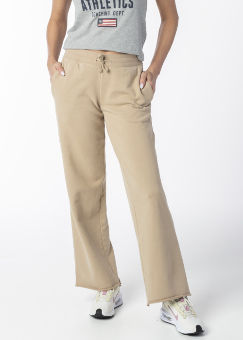 SuperDry sieviešu sporta bikses ir vienkrāsainas un nodrošina komfortu ikdienas aktivitātēs. Tām ir aukla jostasvietā, kas ļauj pielāgot bikšu platumu, kā arī kabata sānos, kurā var ērti ievietot nelielus priekšmetus. Modele ir 176 cm gara un valkā 36. izmēru.